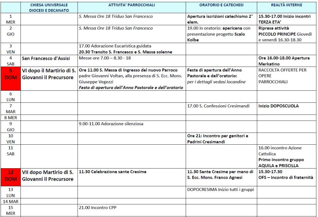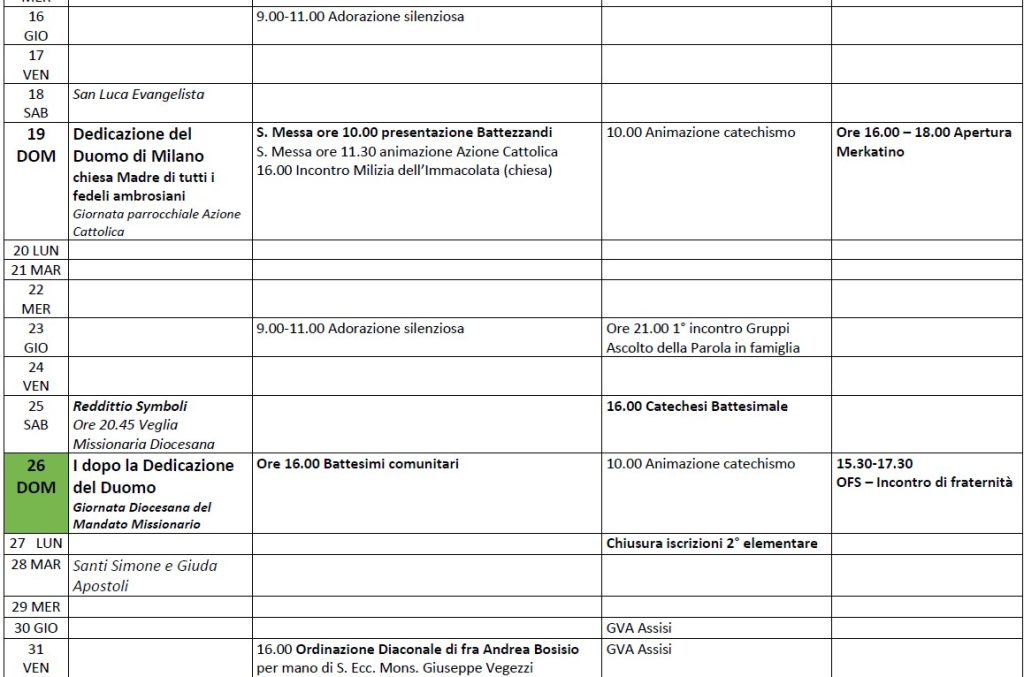 Calendario Parrocchiale Mensile