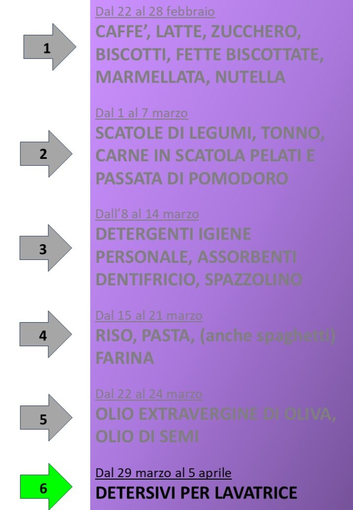 Ogni settimana di Quaresima acquista i prodotti indicati e portali in chiesa o in oratorio.