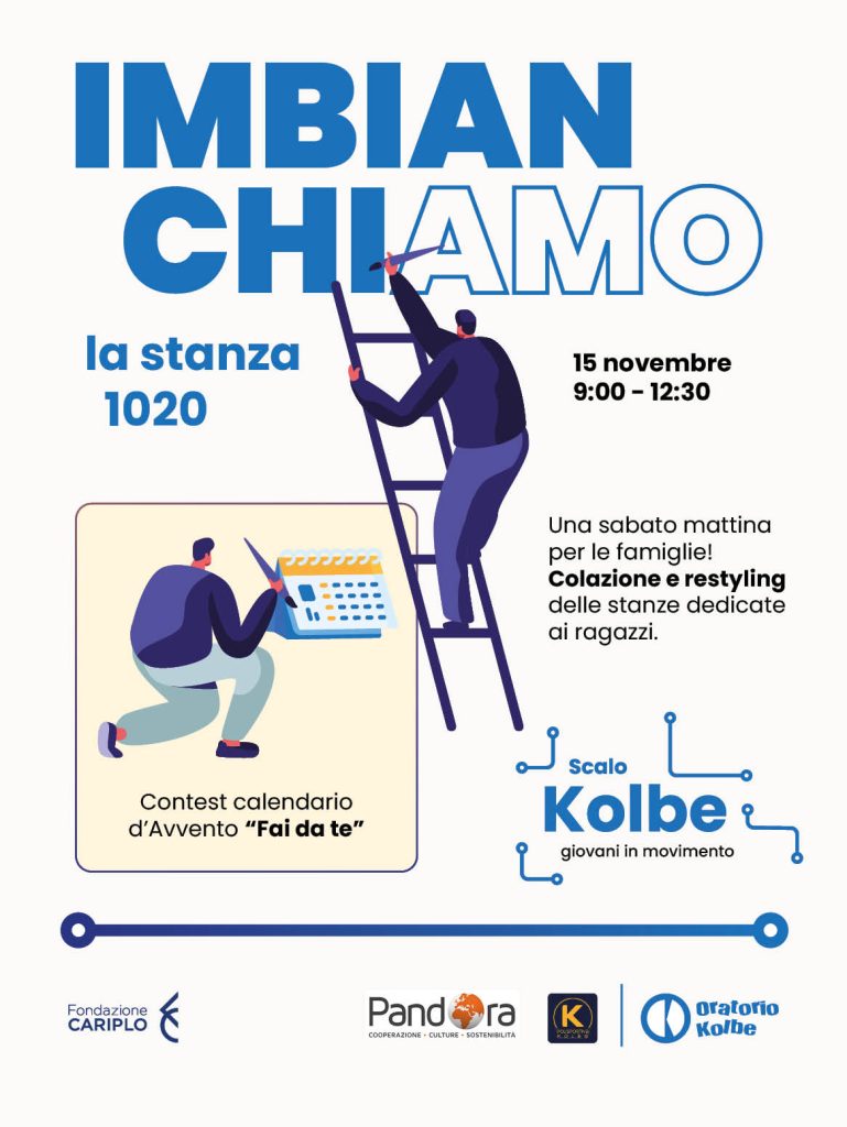 Vi invitiamo ad una giornata di festa, condivisione e spennellate con: “ImbianchiAMO”. Diamo una mano di bianco e rinnoviamo la “Stanza 1020” del progetto “Scalo Kolbe”.